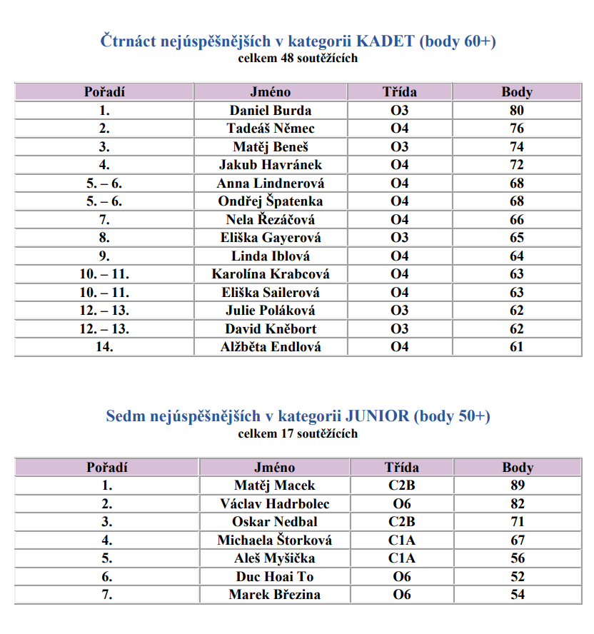 Uvedeným studentům blahopřejeme k pěkným výsledkům a všem soutěžícím děkujeme za účast. Vaše výsledky budou zpracovány v rámci okrasu i kraje. Možná čeká na někoho z vás i klokaní cena 😊