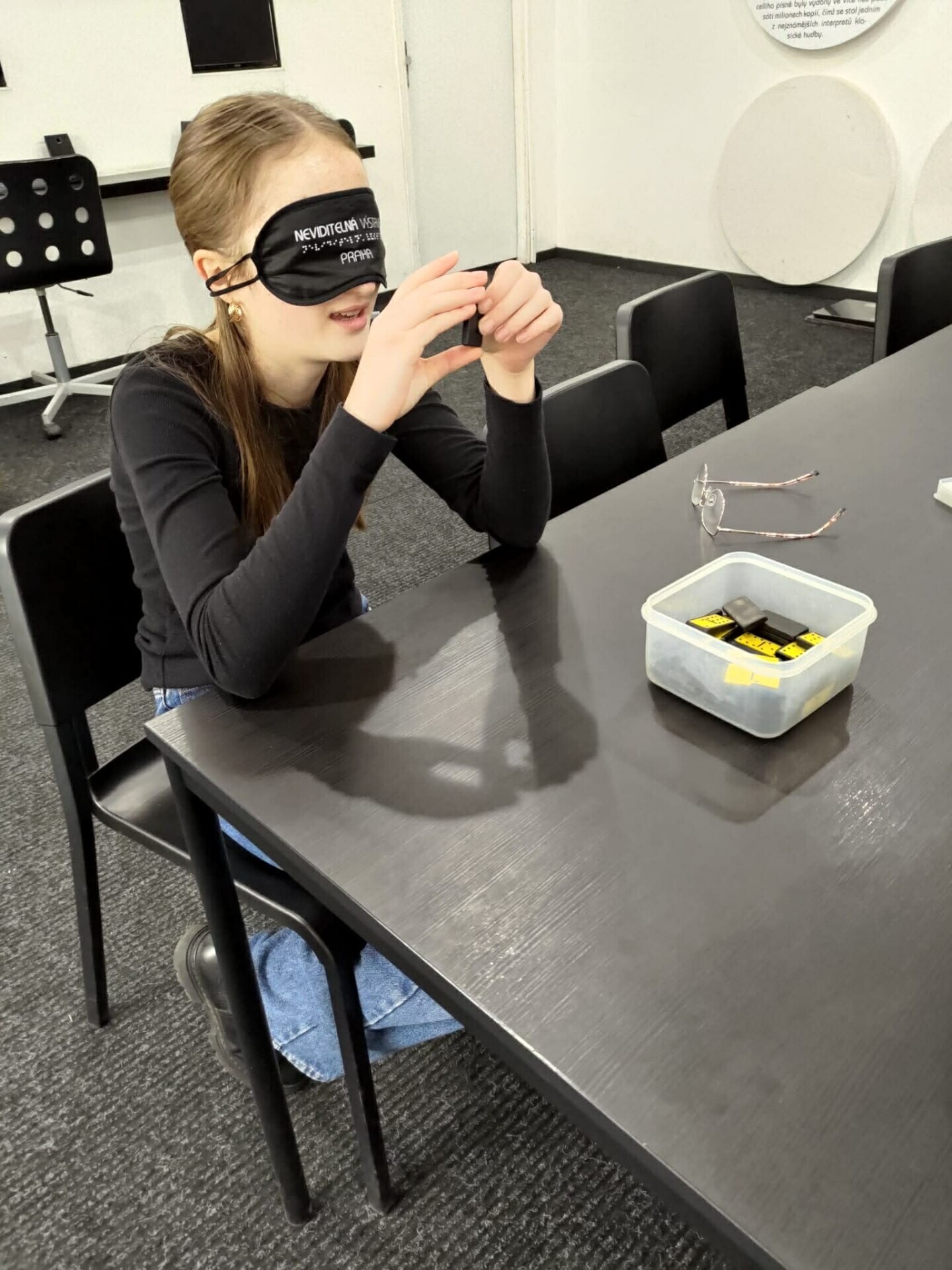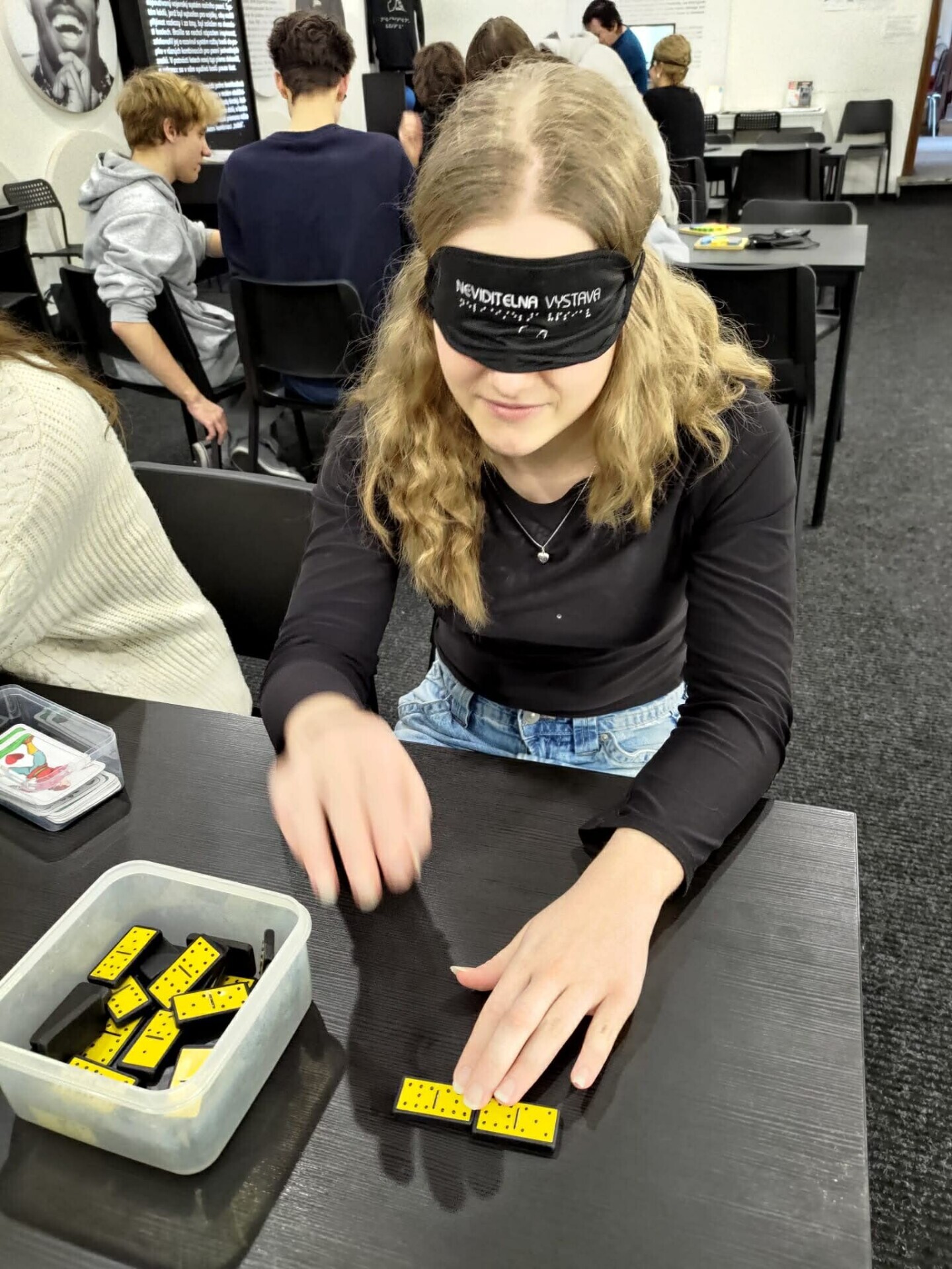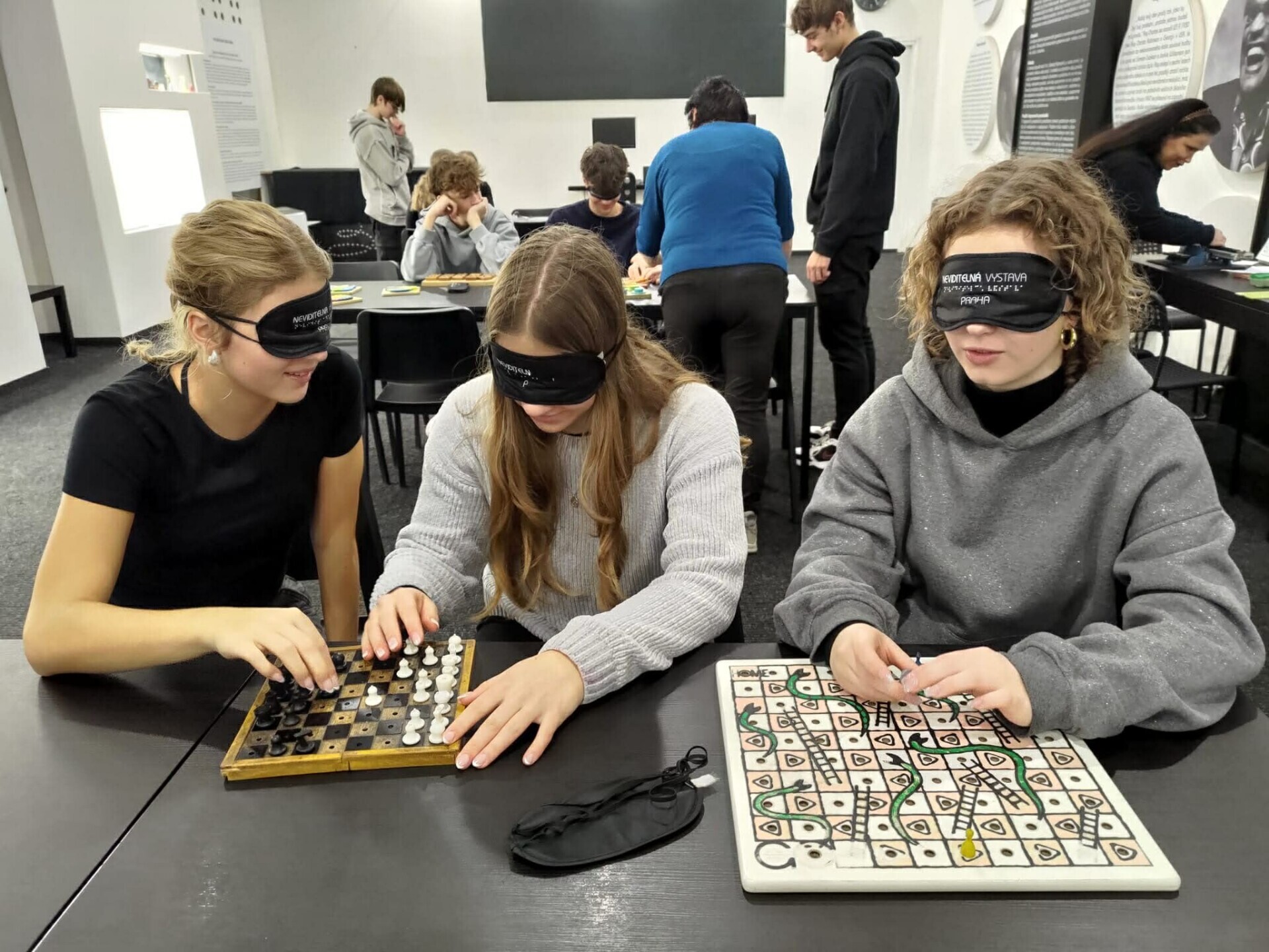 Výstava přibližuje život se zrakovým postižením. Studenti si mohou vyzkoušet jednotlivé slepecké pomůcky, seznámí se se slepeckým písmem, k dispozici jsou i deskové hry pro nevidomé. Hlavní částí výstavy je ale pohyb skupiny v naprosté tmě. Jediným záchytným bodem je hlas průvodce, který se o skupinu stará. Všichni to zvládli, nikdo se nevrátil a určitě to byla dobrá zkušenost, která přiblížila život ve tmě.