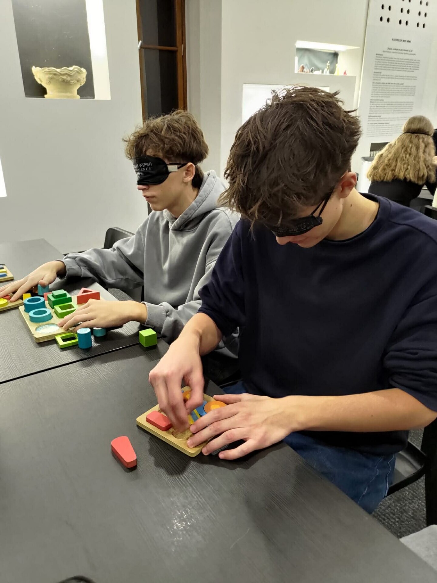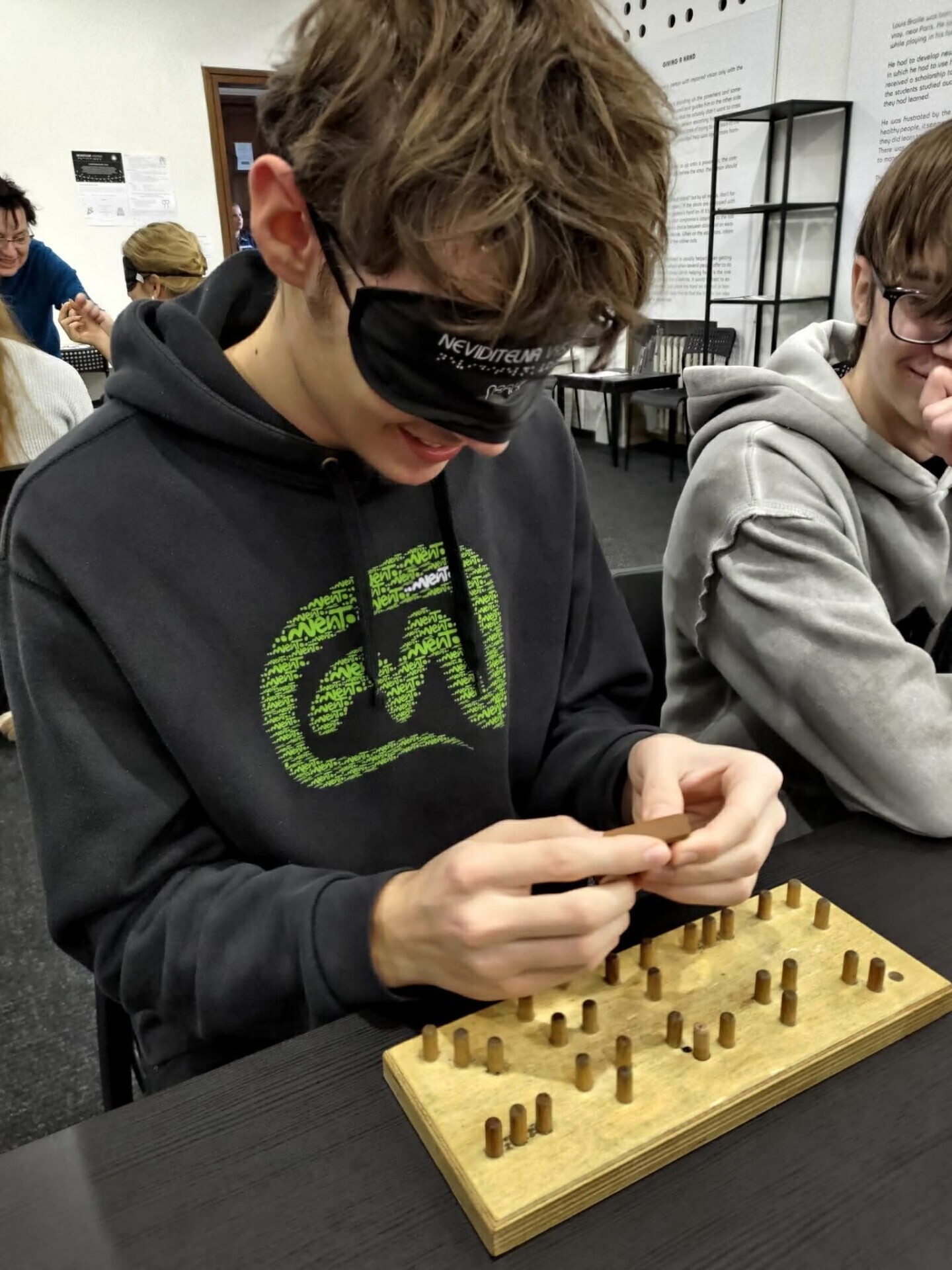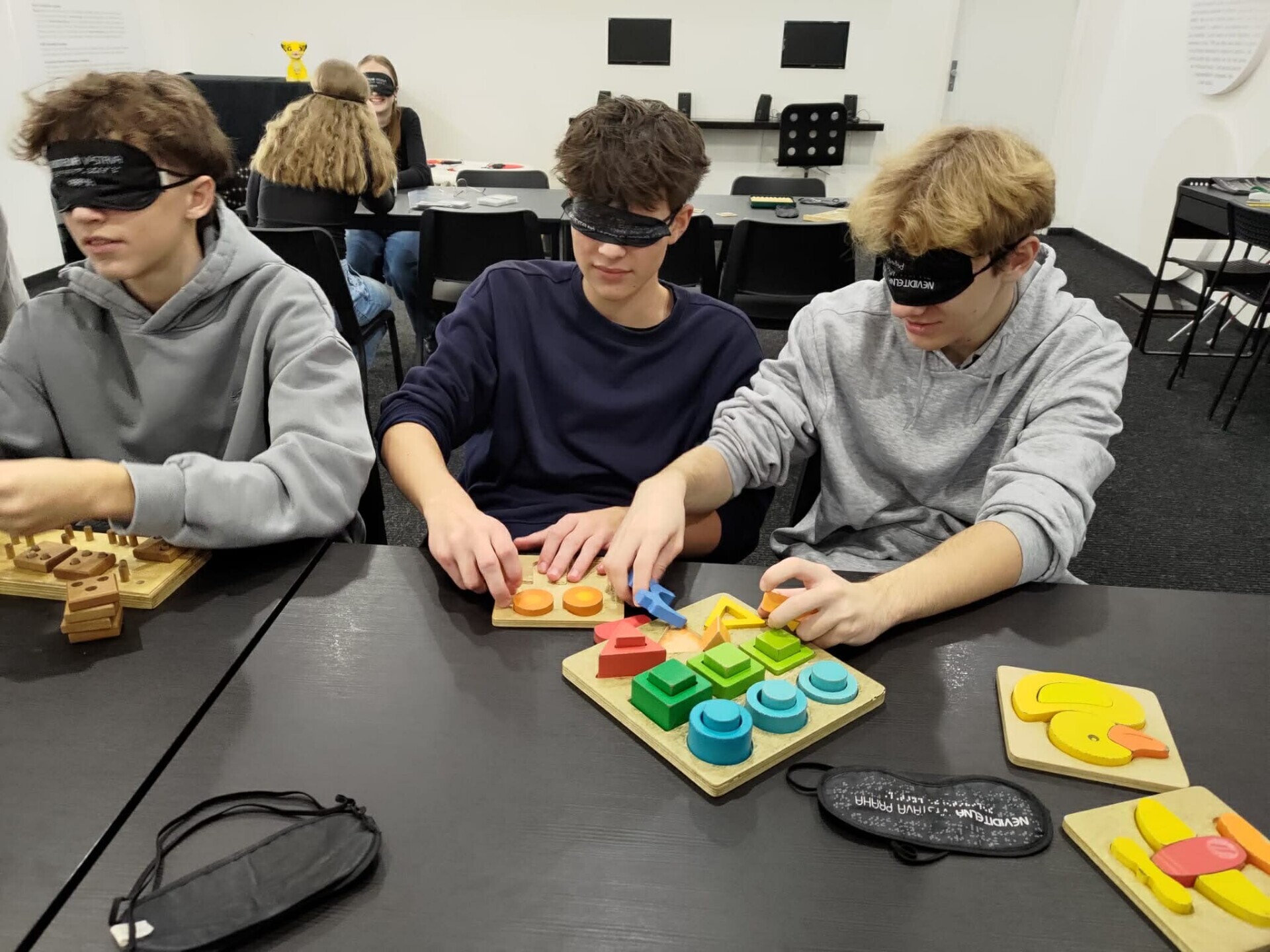 Výstava přibližuje život se zrakovým postižením. Studenti si mohou vyzkoušet jednotlivé slepecké pomůcky, seznámí se se slepeckým písmem, k dispozici jsou i deskové hry pro nevidomé. Hlavní částí výstavy je ale pohyb skupiny v naprosté tmě. Jediným záchytným bodem je hlas průvodce, který se o skupinu stará. Všichni to zvládli, nikdo se nevrátil a určitě to byla dobrá zkušenost, která přiblížila život ve tmě.