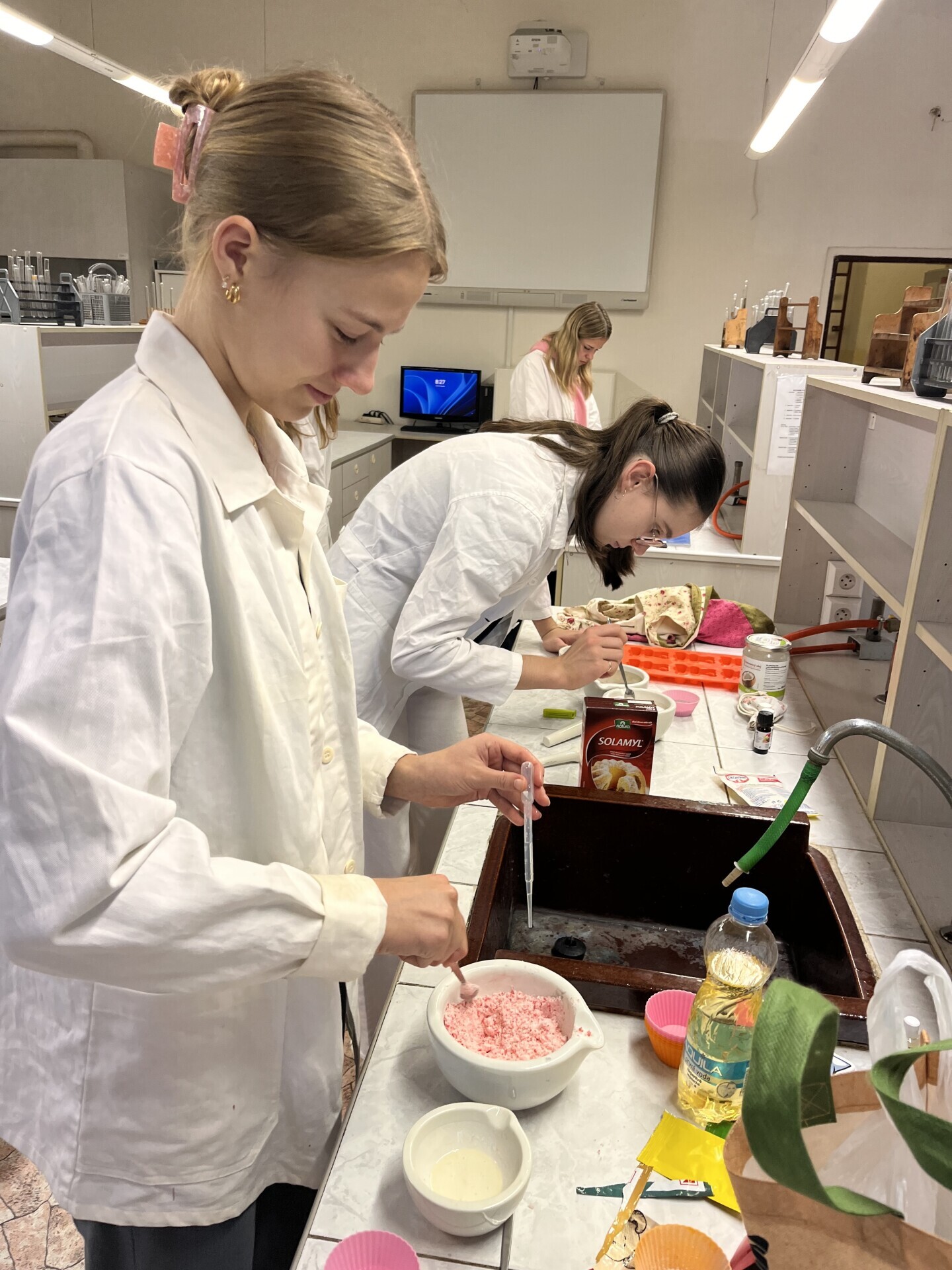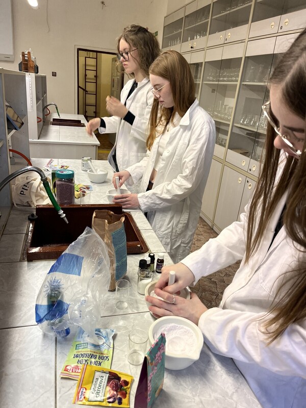 Poslední praktikum z chemie letošního roku věnovala septima přípravě malého překvapení pro své blízké. Studenti si vyzkoušeli vyrobit šumivé bomby do koupele, a tak se laboratoř na chvíli proměnila v nejvoňavější místnost naší školy. Mohli jste cítit levanduli, kokos, ovocné tóny nebo eukalyptus. Věřím, že si studenti praktikum velmi užili a šumivá bomba bude pro někoho zpříjemněním vánočních svátků.