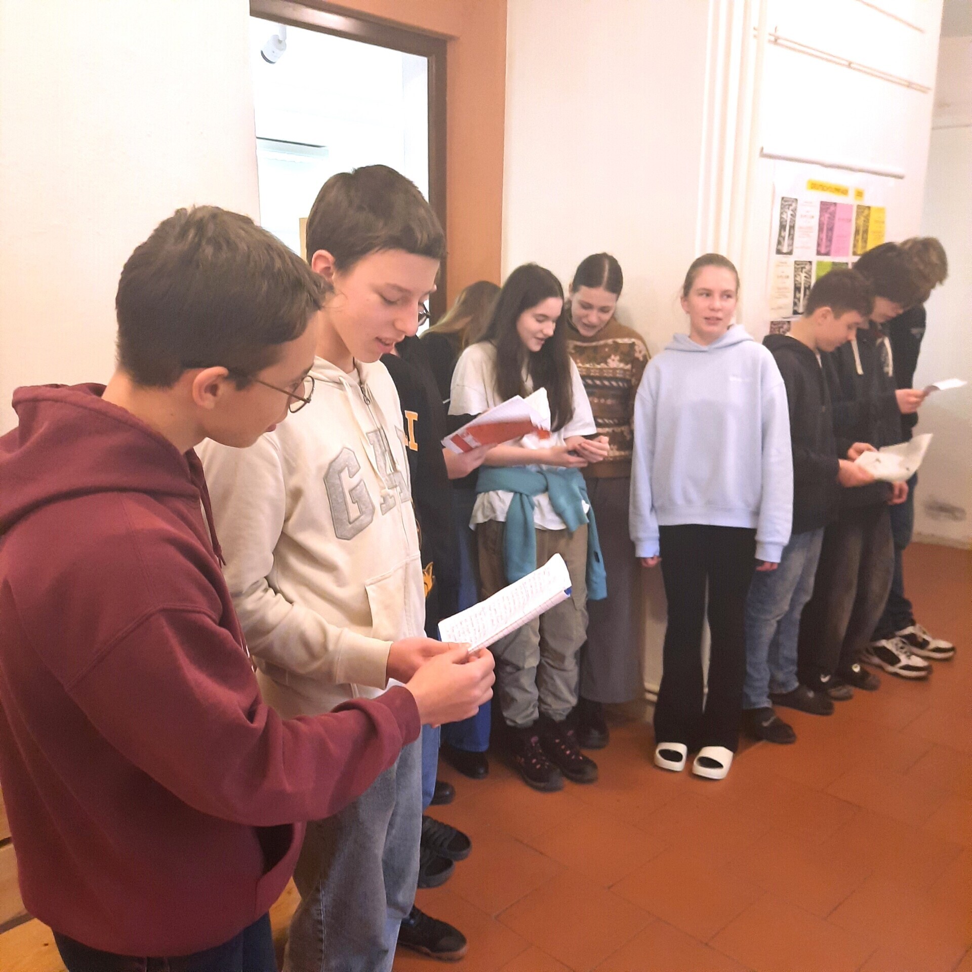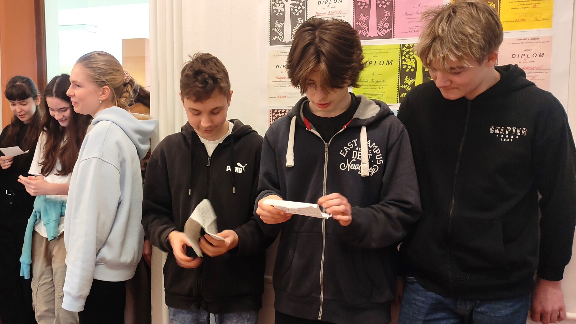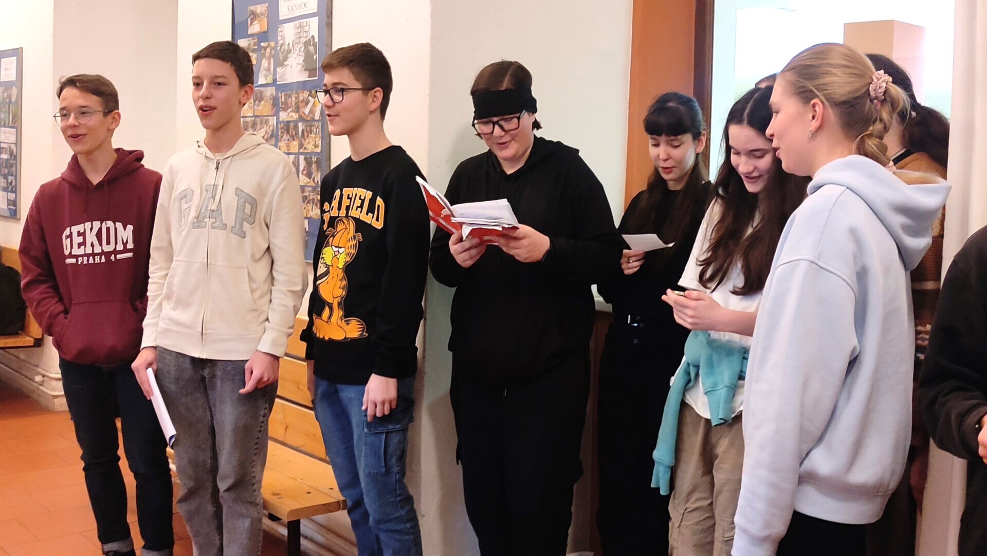 Co nám dali Němci? Možná Vás překvapí, kolik českých zvyků má kořeny u našich sousedů. Kvinta si připravila poutavou prezentaci na téma „Co nám dali Němci k Vánocům aneb co jsme odkoukali?“ Takové symboly Vánoc jako stromeček a adventní věnec k nám doputovaly právě z Německa. Němčináři z kvarty pak přichystali zábavný kvíz, ve kterém byla spousta zapeklitých otázek.