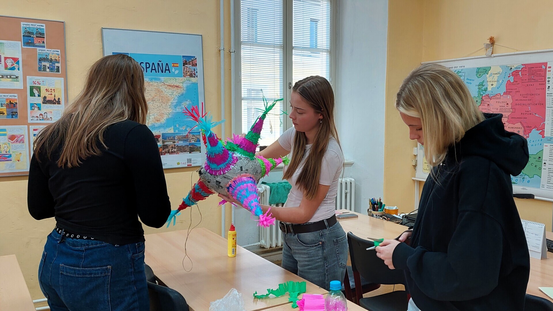 Vrcholem programu byla soutěž o nejkrásnější piñatu. Hudební přestávky a vystoupení sekundy a tercie u stromečku v přízemí dokreslily atmosféru celého dne.