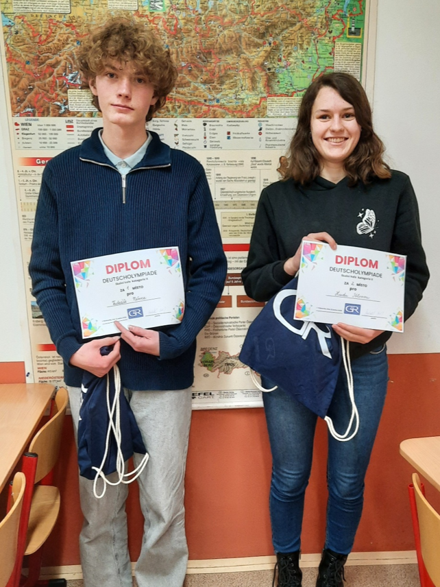 Daniel Burda z O3 a Linda Iblová z O4 (2. místo se stejným počtem bodů)
