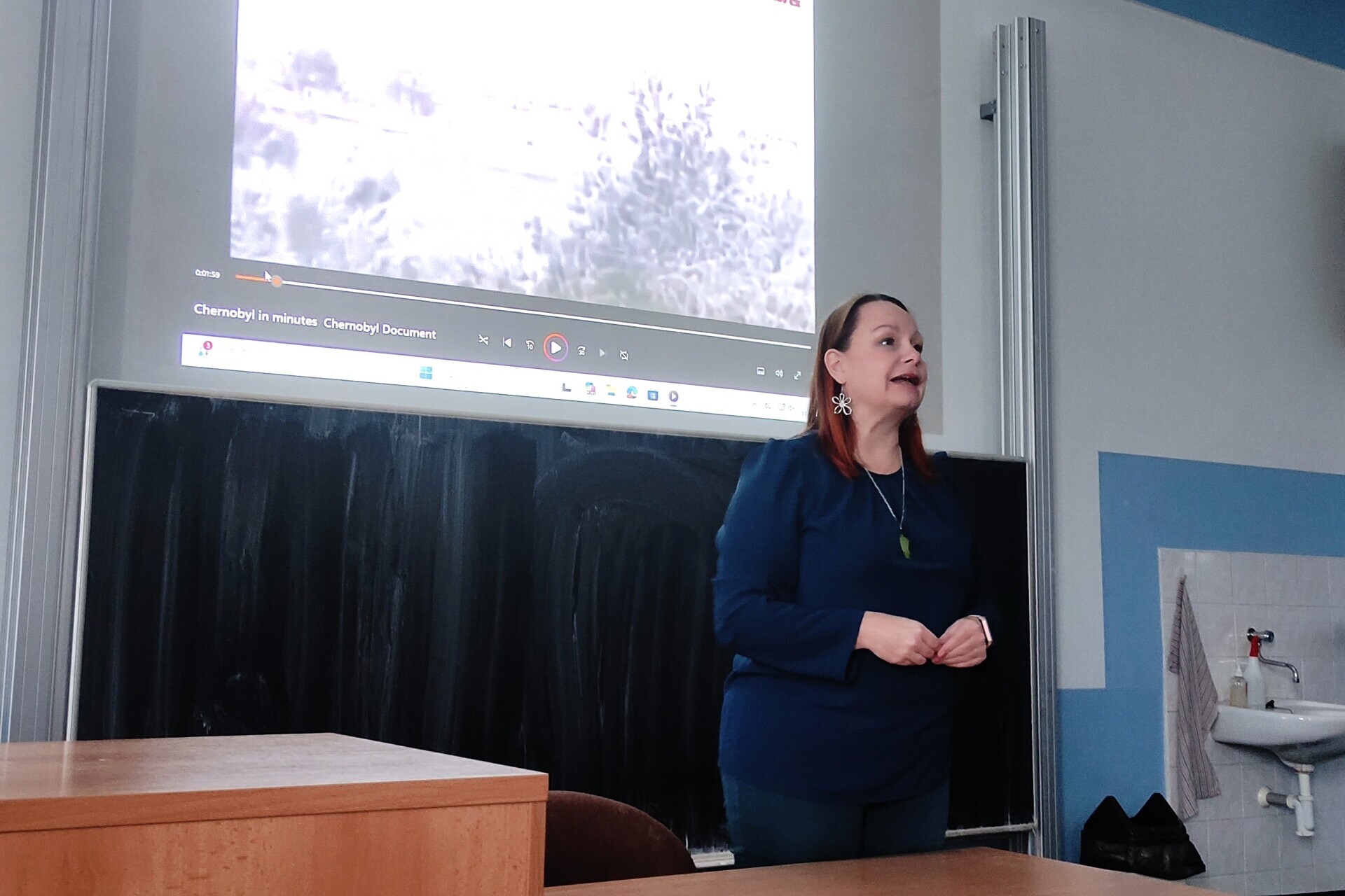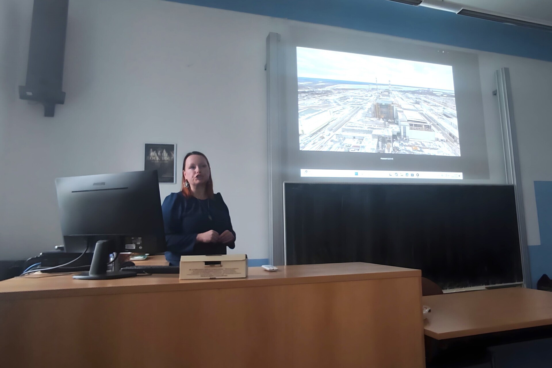 Na naše gymnázium zavítala v úterý 10. 2. 2026 Mgr. Kateřina Vršanská, jediná česká průvodkyně Černobylem. Studenti předposledních a posledních ročníků si vyslechli devadesátiminutové, mimořádně poutavé vyprávění, které zasadilo černobylskou havárii do širšího kontextu a přiblížilo i to, co jí v Sovětském svazu předcházelo. Nechyběly události roku 1986 ani dnešní stav Černobylu a Pripjati. Přednášku doplnily autentické videozáběry, které celému tématu dodaly silnou atmosféru. Děkujeme za návštěvu a jedinečný zážitek.
