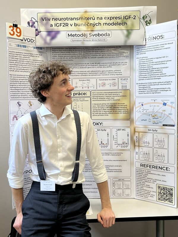 Dne 24. března 2026 proběhlo regionální kolo výstavní soutěže EXPO SCIENCE AMAVET. Studenti z několika krajů zde prezentovali své práce za podpory vědeckých posterů. Metoděj Svoboda (O7) se soutěže zúčastnil s projektem na téma Vliv neurotransmiterů na expresi IGF-2 a IGF2R v buněčných modelech, který zpracovával v rámci stáže na Ústavu organické chemie a biochemie AV ČR.